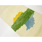 ys7524120; 宗sou 手織り紬切り嵌め荒波模様刺繍開き名古屋帯(額縁仕立て)【着】