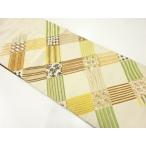 ys7435253; 宗sou 斜め格子に草花模様刺繍昼夜帯(材料)【アンティーク】【着】