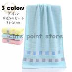 タオル フェイスタオル 74*34cm 同色5枚セット 綿 刺繍 厚手タオル 柔らかい 吸水 極上肌触り 家庭用 ホテル用 おしゃれ かわいい プレゼント 贈り物 選べる3色