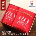 還暦祝い 今治タオル 男性 女性 名入れ 赤 おしゃれ バスタオル&フェイスタオル ギフト セット プレゼント 父 母 還暦 名入れ 贈り物 刺繍