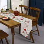 リネンテーブルランナー布フラワーリーフ刺繍植物模様ダイニングテーブルコーヒーテーブルリビングルーム装飾コットン農家風ナチュラルグレー 35