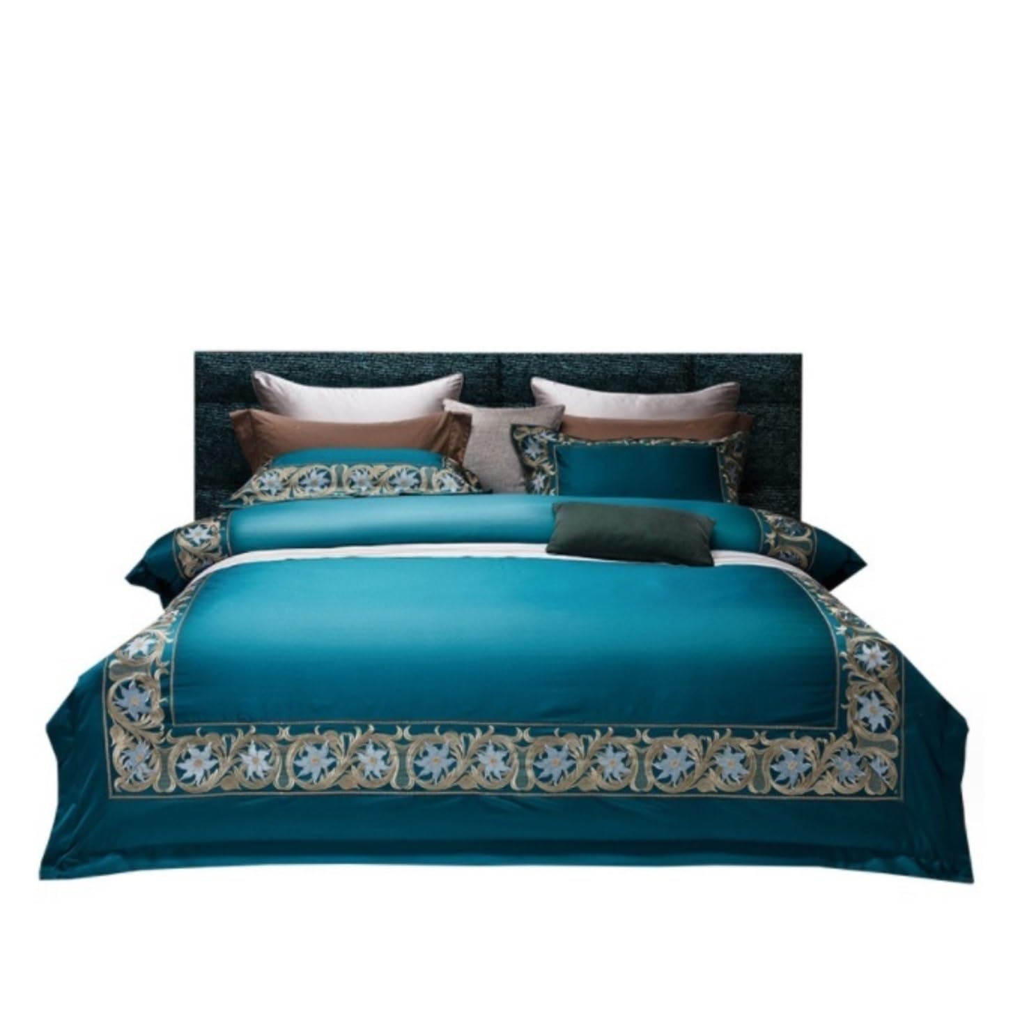 布団カバー セット 寝具カバーセット キルトカバーセット 4点セット 長綿シーツ 刺繍入り 掛け布団カバー 寝具 肌に優しい 掛け布団カバーセット 掛け布団寝具セット (Color : Blue, Size : 1.8/2m bed)
