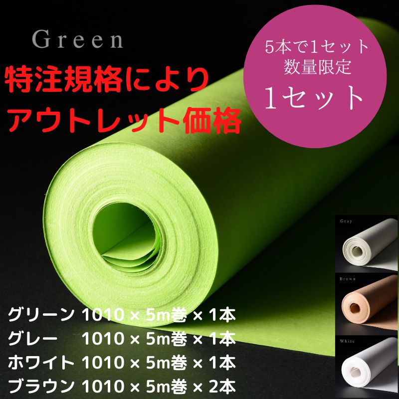 アウトレット品 クラフトロール 1010mm×5m×5本 (アウトレット理由:巻m数規格相違) 40%OFF ブラウン2本 ホワイト1本 グレー1本 グリーン1本