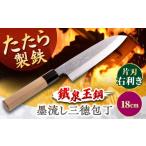 ふるさと納税 包丁 島根県 雲南市 鐵泉玉鋼 墨流し三徳包丁 片刃(右利き) 18cm 島根県雲南市/株式会社たなべたたらの里(奥出雲前綿屋 鐵泉堂)キッチン…