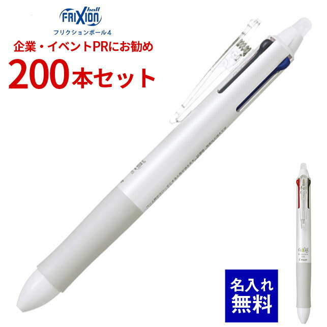 【 名入れ 無料 】 ボールペン 名入れ パイロット フリクションボール4 0.5mm (白軸) 200本セット LKFB-80EF 多機能ペン 4色 多色ボールペン スライドレバー式 黒 赤 青 名前入り 販促 企業PR イベント配布 ノベルティ 販促品 販促グッズ 記念品 記念 景品 粗品 イベント