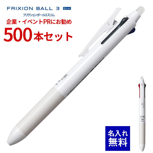 【 名入れ 無料 】 ボールペン 名入れ パイロット フリクションボール3スリム 0.5mm (白軸) 500本セット LKFBS60EF 多機能ペン 3色 多色ボールペン スライドレバー式 黒 赤 青 名前入り 販促 企業PR イベント配布 ノベルティ 販促品 販促グッズ 記念品 記念 景品 粗品