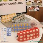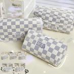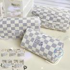 ペンケース 筆箱 レディース 大容量 もこもこ チェック柄 可愛い ポーチ 収納 多機能 中学 高校 大学生 女子 小学校 筆入れ 韓国風 おしゃれ