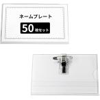 安全ピン・クリップ両用 名札入れ 50枚入り クリアケース ハードシェル pvc 透明 名札ホルダー 交流会 セミナー 社員証 展示会 イベント