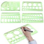テンプレート 定規 4点セット テンプレート 透明デザイン定規 楕円・円・多形・三角定規 製図用 幾何図面計量製図用品 学校教育用 建築科用 一般総合定規 多機能