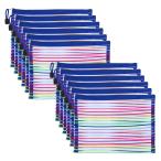 uxcell PATIKIL メッシュバッグ 12個 A5サイズ ペンケース 書類ジッパーバッグ トラベルポーチオーガナイザー オフィス用品 ブルー