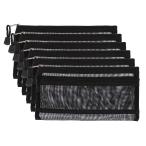 uxcell PATIKIL メッシュバッグ 6個 B6サイズ ペンシルトラベルケース 化粧ポーチ ジッパーファイル 財布バッグ ブラック