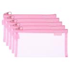 uxcell PATIKIL メッシュバッグ 5個 A6サイズ ペンケース 化粧ジッパーメッシュバッグ トラベルポーチオーガナイザー ピンク