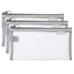 uxcell PATIKIL メッシュバッグ 3個 A6サイズ ペンケース 化粧ジッパーメッシュバッグ トラベルポーチオーガナイザー グレー