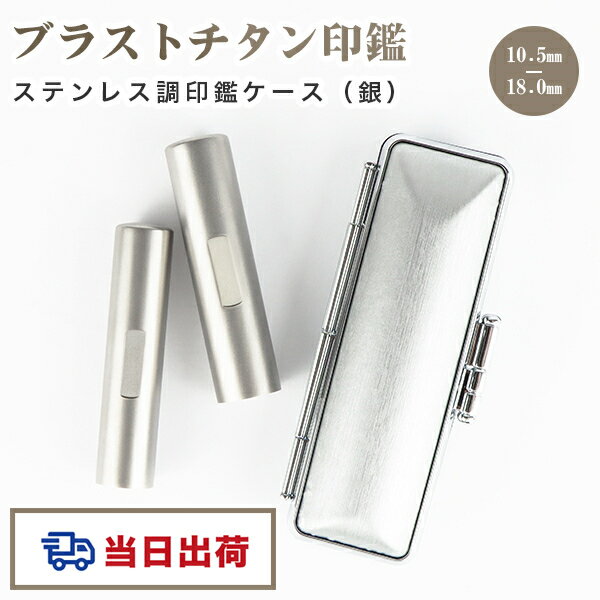 【あす楽対応・当日発送】平日12時締切 即納 アタリ付き 目印付き 実印 認印 銀行印 印鑑 チタン印鑑 名前 判子 ハンコ シルバー ブラストチタン 男性 女性 ハンコ 就職祝い 10年保証 【ブラストチタン目印付き10.5-18.0mm ステンレス調(銀・G10)印鑑ケース付き】