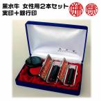 職人手作り〜完全手彫り 女性用 印鑑2本セット(芯持黒水牛)(実印+銀行印)吉相サイズ完全手彫り印鑑/ケース付き印鑑セット