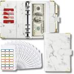 家計管理 ポーチ お金管理 ファイル バインダー 家計簿 ポケット12個付き A6 (ホワイト)