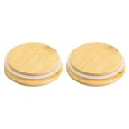 uxcell 2個の3.46\"竹製蓋とシリコンシーリングリング 木製メイソンジャーリッドメイソンジャー用竹製リッドワイドマウス保存瓶リッドボールジャー