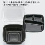使い捨て 弁当容器 二段 BF-210 黒本体・黒中仕切・嵌合蓋セット[各1200セット] デリバリー テイクアウト 宅配