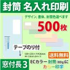 封筒作成 窓付きテープのり付き 長3 ECカラー封筒にカラーで名入れ印刷 500枚 長形3号 封筒代込み 厚さ80g 標準配送料込み
