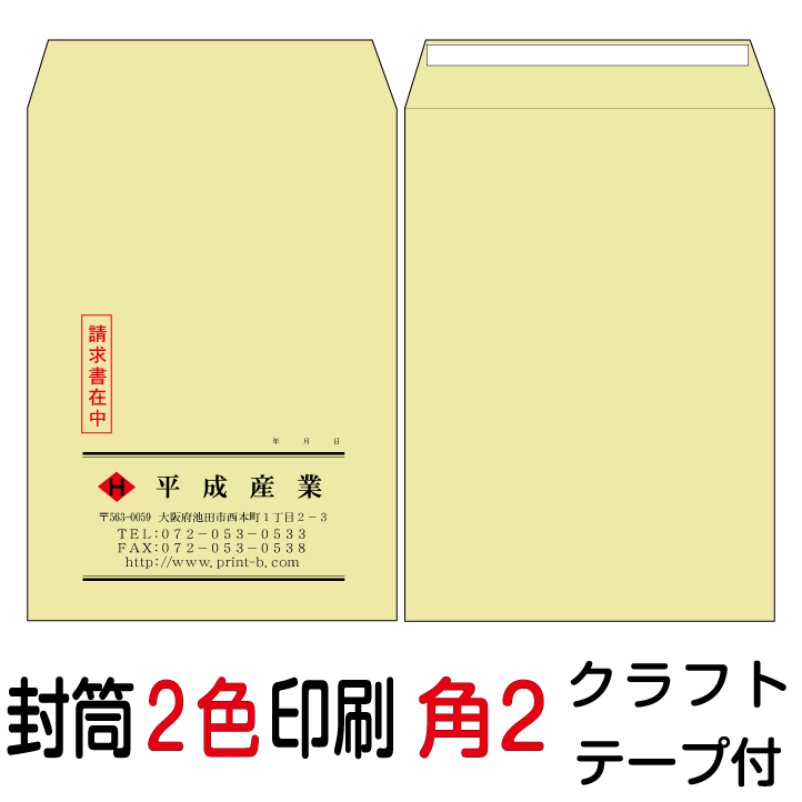 封筒印刷 角2テープ付封筒 2色印刷 ケント(100)7000枚