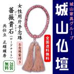 女性用片手念珠 薔薇貴石(ばらきせき・ロードナイト) 共仕立 正絹頭房 お念珠袋付き