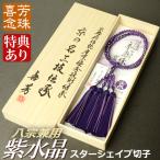 数珠 念珠 高級京念珠 (喜芳工房)(八宗兼用) (限定品)紫水晶スターシェイプカット切子共仕立 上質正絹蛍房 九寸(桐箱付)(女性用) 2月の誕生石