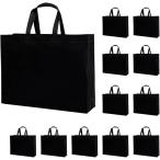 手提げ袋 不織布 エコバッグ ギフトバッグ 無地 厚手 ブラック 横型 12枚(ブラック, 35cmx25cmx10cm)