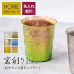 ギフト HORIE 純チタン二重タンブラー 高保冷2重構造 手提げ袋付 名入れ 窯創り ライト 270ml 母の日 父の日 誕生日 退職 結婚 イラスト お酒 オリジナル