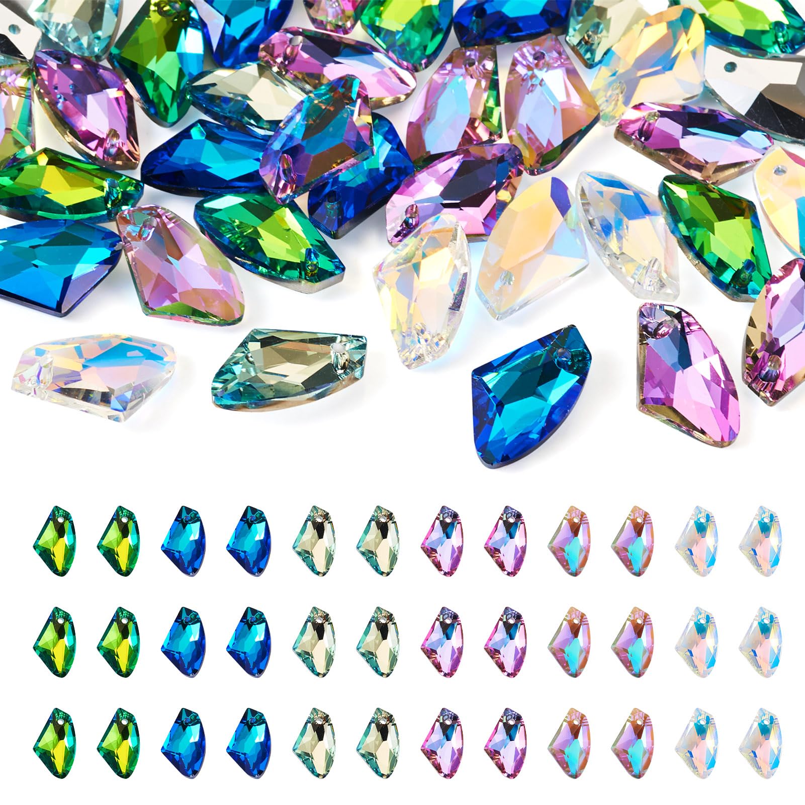 【送料無料】Beadthoven ガラスチャーム 多面カット キラキラ 約36個/箱 6色 ポリゴン ファセットガラス ペンダントパーツ 飾り用ビーズ シルバーメッキボトム カラフル 可愛い サンキャッチャー ジュエリー作成 アクセサリー材料 手芸クラフト用 DIY ハンドメイド パーツ 手