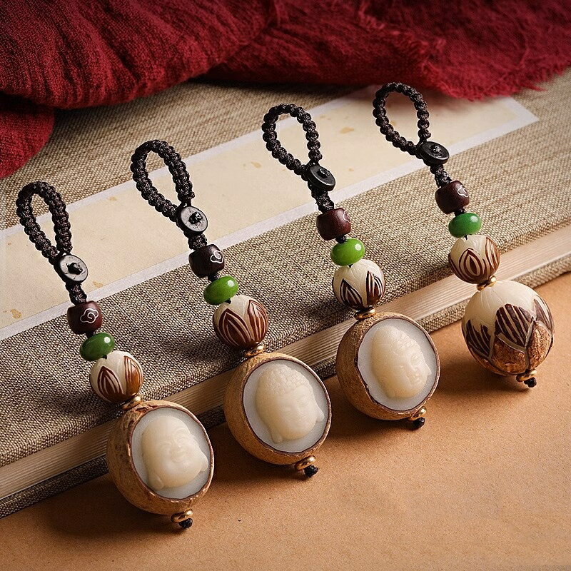 「10%OFFクーポン配布中」キーホルダー 彫刻 ペンダント 観音 車のキーホルダー ピースチェーン 菩提蓮 開運厄除 金運隆昌 お守り