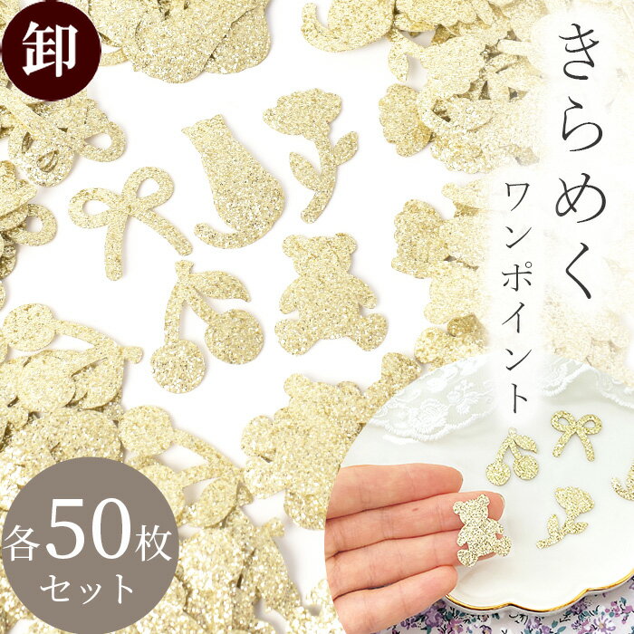 【先着150円OFFクーポン】【卸売り】アイロン ワッペン 小 ゴールド ラメ 50枚 セット 全5種 ■ まとめ買い 卸 業務用 作家 ワンポイント くま リボン チェリー 花 猫 アイロン接着 おしゃれ 小さめ Mymama ハンドメイド 手作り 手芸 ■