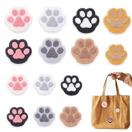 アイロン ワッペン 12枚入り アイロン接着 アップリケ 可愛い 女の子 猫 肉球縫い付け DIY服 手作り 手芸 アクセサリーパーツ 補修 入園 入学 マーク 幼稚園 保育園 小学校 ギフト