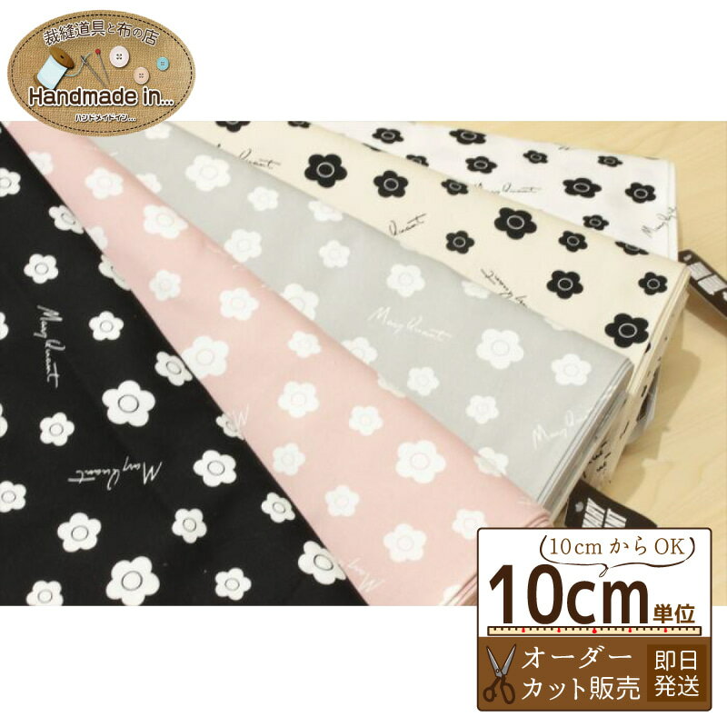 【マラソンP3倍★7%OFFクーポン】MARY QUANT オックス【10cmあたり】 オーダーカット【 モノトーン 生地 マリークヮント マリークワント 花柄 フラワー 花柄生地 英字 ロゴ プリント 日本製 ハンドメイド 手芸 オックス生地 生地 布 】