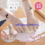 キッチングローブ キッチン手袋 左右セット 両手用 ロング丈 起毛 掃除 家事 水仕事 皿洗い 食器洗い 手荒れ防止 防滑 長い あったか 暖かい ス