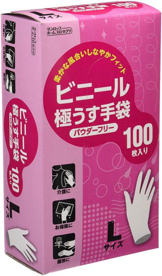 【SS期間中10%OFF】ダンロップ ホームプロダクツ 69541 ビニール手袋 使い捨て 極薄 パウダーフリー クリア L 油汚れに強い やわらかくフィット 粉なしタイプ 100枚入