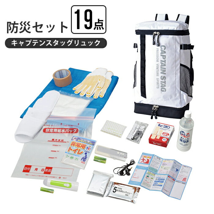 【楽天スーパーSALE10%OFF】防災セット 19点 リュック 非常時 避難 災害 震災 水害 万が一の備え 手袋 軍手 非常用トイレ 絆創膏 給水バッグ FMラジオ バックパック