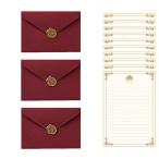 レターセット手紙 おしゃれ ヴィンテージ風手紙セット便箋 招待状 結婚式 誕生日 記念日 便箋10枚、封筒3枚、密封印鑑3枚 (レッド)
