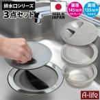 排水口 3点セット キッチン 流し用 止水フタ / 排水プレート / 浅型ゴミカゴ グレー 日本製 排水口カバー 排水口 ふた フタ 蓋 排水口蓋