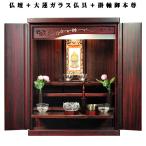 【ご本尊+大蓮仏具セット(紫檀色)+掛軸留め】仏具込み・桐材・ミニモダン仏壇【未来20号・紫檀色】送料無料