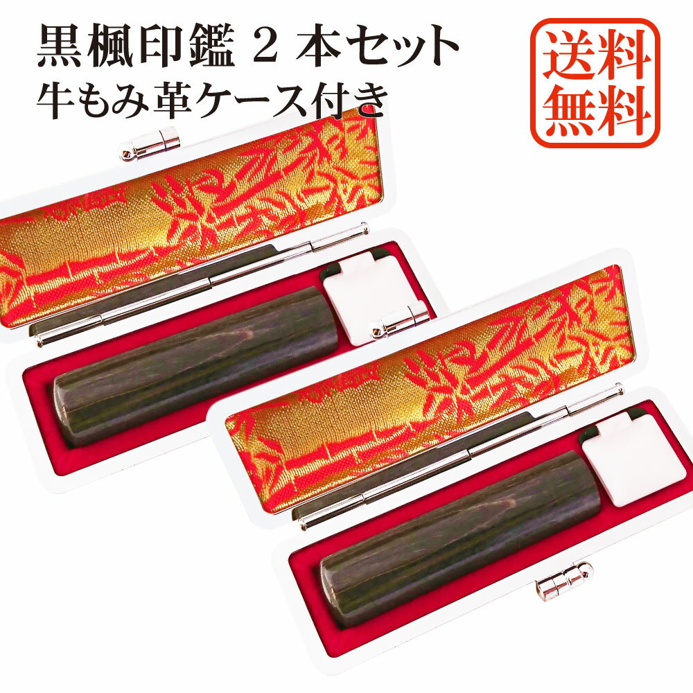 【スーパーSALE】【20%OFF】印鑑 2本 セット 黒楓 個人用印鑑 実印・銀行印セット 牛もみ革ケース付き 楓 はんこ ケース付セット アタリ 印鑑ケース 朱肉付き ギフト 10年保証 送料無料 印鑑証明 通帳登録 就職祝い