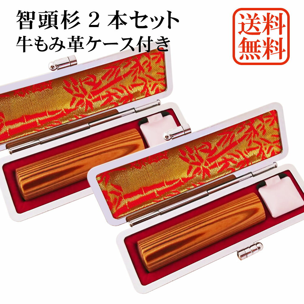 【スーパーSALE】【20%OFF】印鑑 2本 セット 智頭杉 個人用印鑑 実印・銀行印セット 牛もみ革ケース付き 杉 はんこ ケース付セット アタリ 印鑑ケース 朱肉付き ギフト 10年保証 送料無料 印鑑証明 通帳登録 就職祝い