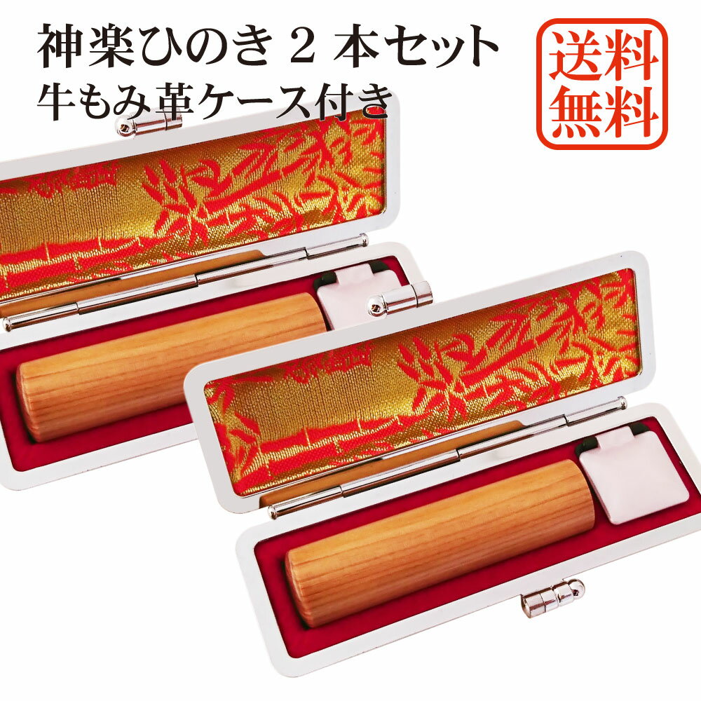 【スーパーSALE】【20%OFF】印鑑 2本 セット 神楽ひのき 個人用印鑑 実印・銀行印セット 牛もみ革ケース付き 檜 はんこ ケース付セット アタリ 印鑑ケース 朱肉付き ギフト 10年保証 送料無料 印鑑証明 通帳登録 就職祝い