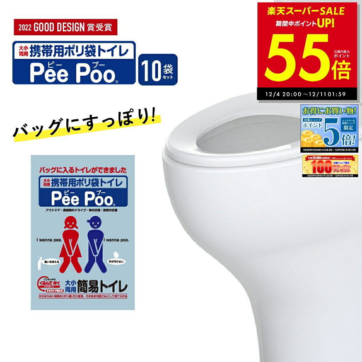 【先着30%OFFクーポン!! 12/4 20:00〜】携帯用トイレ 携帯トイレ 非常用トイレ 大便 小便 大小両用 PeePoo ピープー ぴーぷー ポリ袋 簡易トイレ 自立型 防災グッズ 災害トイレ 地震対策 災害時 水のいらない 軽量 コンパクト 女性 男性 高齢者 子供 持ち歩き 臭わない p10