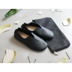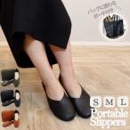 携帯 スリッパ 黒 バブーシュ かかと 付き 折らない 折りたたまない S M L メンズ レディース スリッポン レザー調 おしゃれ 高級感 柔らかい ポーチ付き 袋付き
