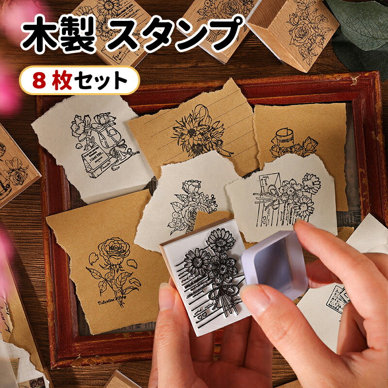 \スーパーセール/8個セット 木製 スタンプセット BOX入り 花 ゴム印 スタンプリボン スクラップブッキング 手帳 教材 保育園 幼稚園 育児日記 手紙 メモ パッケージ スタンプ 海外 輸入 はんこ 木製スタンプ 誕生日 ギフト 送料無料 手帳 手紙 雑貨 BOXセット