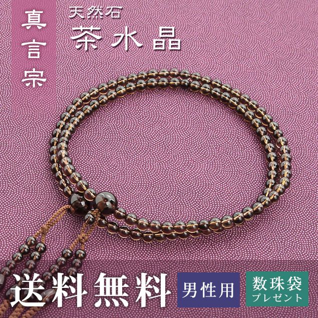【楽天スーパーSALE限定50%OFF】 数珠 男性用 真言宗 用 数珠 茶水晶 (正絹華梵天房 焦茶) 送料無料 数珠袋 無料特典付 数珠 念珠 京念珠 じゅず ギフト 法事 葬式 葬儀 結納 .数珠.