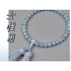 数珠 女性用 アクアマリン アクアマリン 共玉 8mm玉 正絹頭付房 濃い水色 No.6 細桐箱入 送料無料 略式数珠 片手念珠 京念珠
