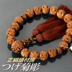 数珠 念珠 つげ菊彫共仕立 正絹頭付房(桐箱付)(略式数珠(男性用)/京念珠)