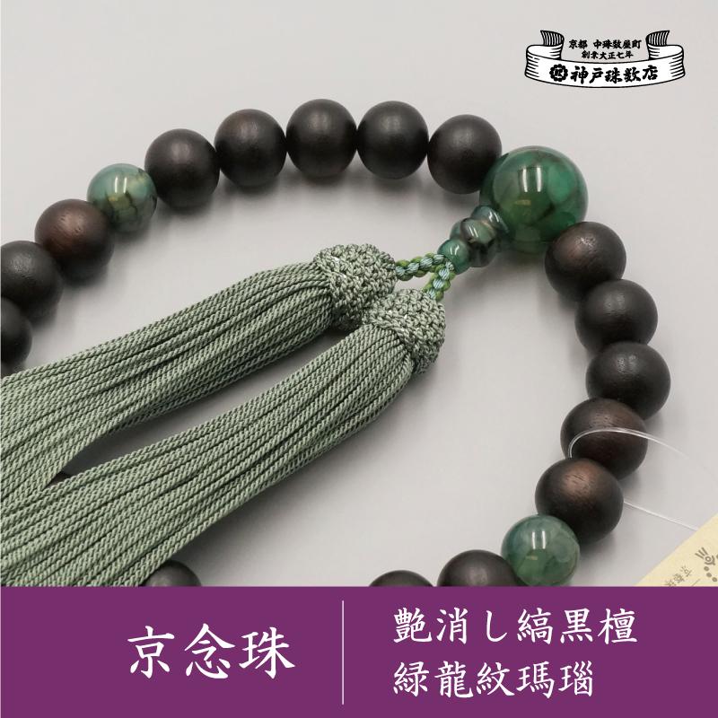 【ふるさと納税】【神戸珠数店】〈京念珠〉艶消し縞黒檀 緑龍紋瑪瑙入り 男性用数珠 | 京都 京都市 念珠 数珠 京念珠 片手用