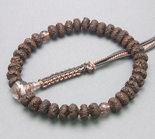 【10%OFF&P5倍★3/4-3/11】天竺菩提樹尺六みかん珠 ルチルクォーツ仕立 正絹紐房【#2】
